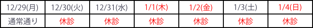 年末年始の休診日のお知らせ